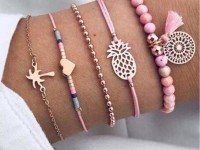 Az idei trend különlegessége a karkötők mennyiségében rejlik. Ez elsőre furcsán hangozhat, pedig csupán csak arról van szó, hogy olyan több darabos szettekben árulják őket, amikben mindegyik karkötő máshogy néz ki, mégis passzolnak egymáshoz. Hogyan? Az alapszínük ugyanolyan és a minták témája is megegyezik. Persze ezzel is túlzásba lehet esni, figyeljünk oda az összhatásra: ne tegyünk fel egyszerre túl sok darabot - maximum öt-hat vékonyabb karkötőt válasszunk!